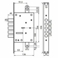 Mottura 52.783 Замок врезной сувальдный для металлических и бронированных дверей, универсальный. Данная модель станет прекрасной дополнительной защитой для вашего дома. Замок имеет пять ригелей, вывод под тяги и 4 высший класс безопасности. Замок не имеет защёлки, что делает его исключительно дополнительным. Из особенностей можно отметить то, что замок Mottura 52.783 комплектуется ключами последнего поколения с переменной кодировкой, которые имеют независимую левую и правую стороны. Таким образом значительно затрудняется вскрытие данной модели. Технические характеристики: ПроизводительMOTTURAСтранаИталияВес2670 гГарантия2 годаБэксет (удаление ключевого отверстия)66 мм Вылет ригеля 36 мм Диаметр ригеля 18 мм Длина ключа 40 мм Дополнительная защита - Задвижка Нет Защита от копирования ключа Нет Класс безопасности 4 Количество ключей 5 Количество комбинаций - Количество ригелей 5 Межосевое расстояние - Наличие выводов для тяг Да Наличие лицевой планки Со съемной планкой Отверстия под стяжки Нет Тип замка Дополнительный (верхний) Тип защелки - Тип механизма секретности Сувальдный Тип упаковки Коробка Цвет Никель