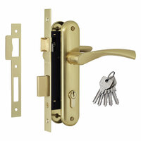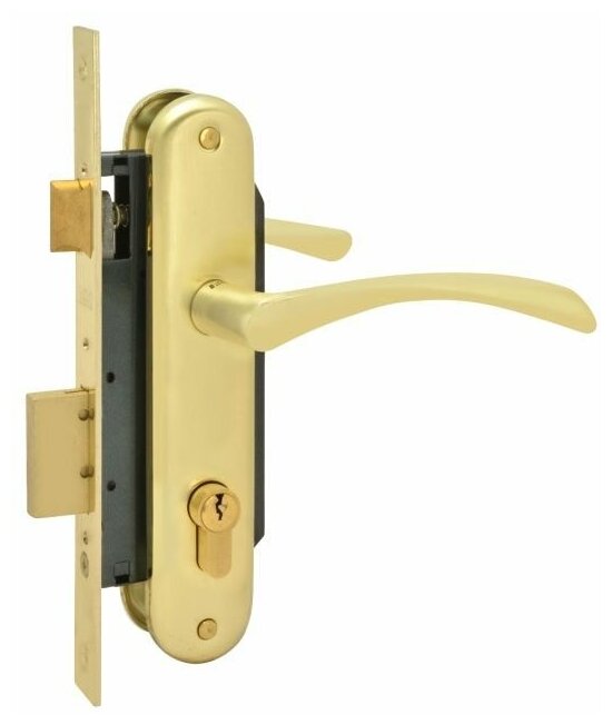Комплект замка предназначен для установки в деревянные входные двери. В комплект входят 2 ручки на планке, корпус замка, ответная планка, цилиндровый механизм и 5 ключей. Межосевое расстояние 70 мм. Комплект универсальный, можно устанавливать на двери левого и правого типа открывания. Цилиндр и ключи выполнены из латуни, ручки на планке - сталь, алюминий, корпус стальной, механизм из закаленной стали. Гальваническое многослойное покрытие лицевых деталей, корпус замка имеет защитное антикоррозийное напыление. Гарантия на работу изделия 5 лет.