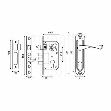 Купить Замок врезной Punto (Пунто) цилиндровый с защёлкой в комплекте с дверной ручкой KIT P15 4061/3 CRONA AB (бронза) 5 кл. матовый никель с доставкой по всей России.