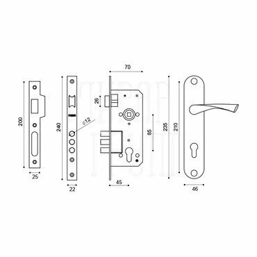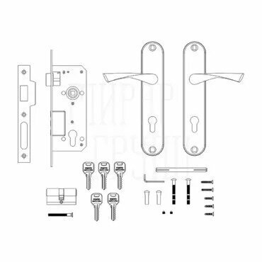 Замок врезной Punto (Пунто) цилиндровый с защёлкой в комплекте с дверной ручкой KIT P90 4585/3 CRONA AB (бронза) 5 кл. матовый никель: сравнение цен, характеристики, фото, актуальное наличие и цены.