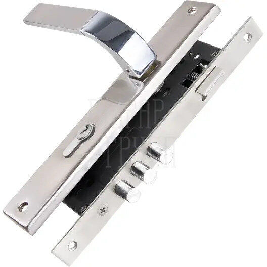 Купить Замок врезной Punto (Пунто) цилиндровый с защёлкой в комплекте с ручкой KIT P90 4585/3 ORION SN/CP (мат. никель/хр матовый никель с доставкой по всей России.