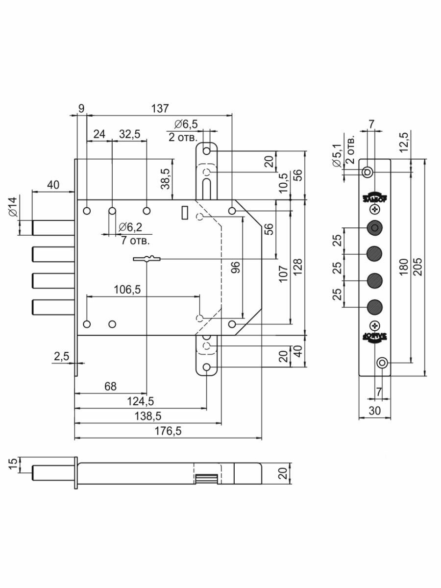 Замок врезной (сувальдный) эльбор 1.05.11 Базальт/удаление ключевого отверстия: 68 мм/для металлических, деревянных, гаражных дверей, ворот, калиток