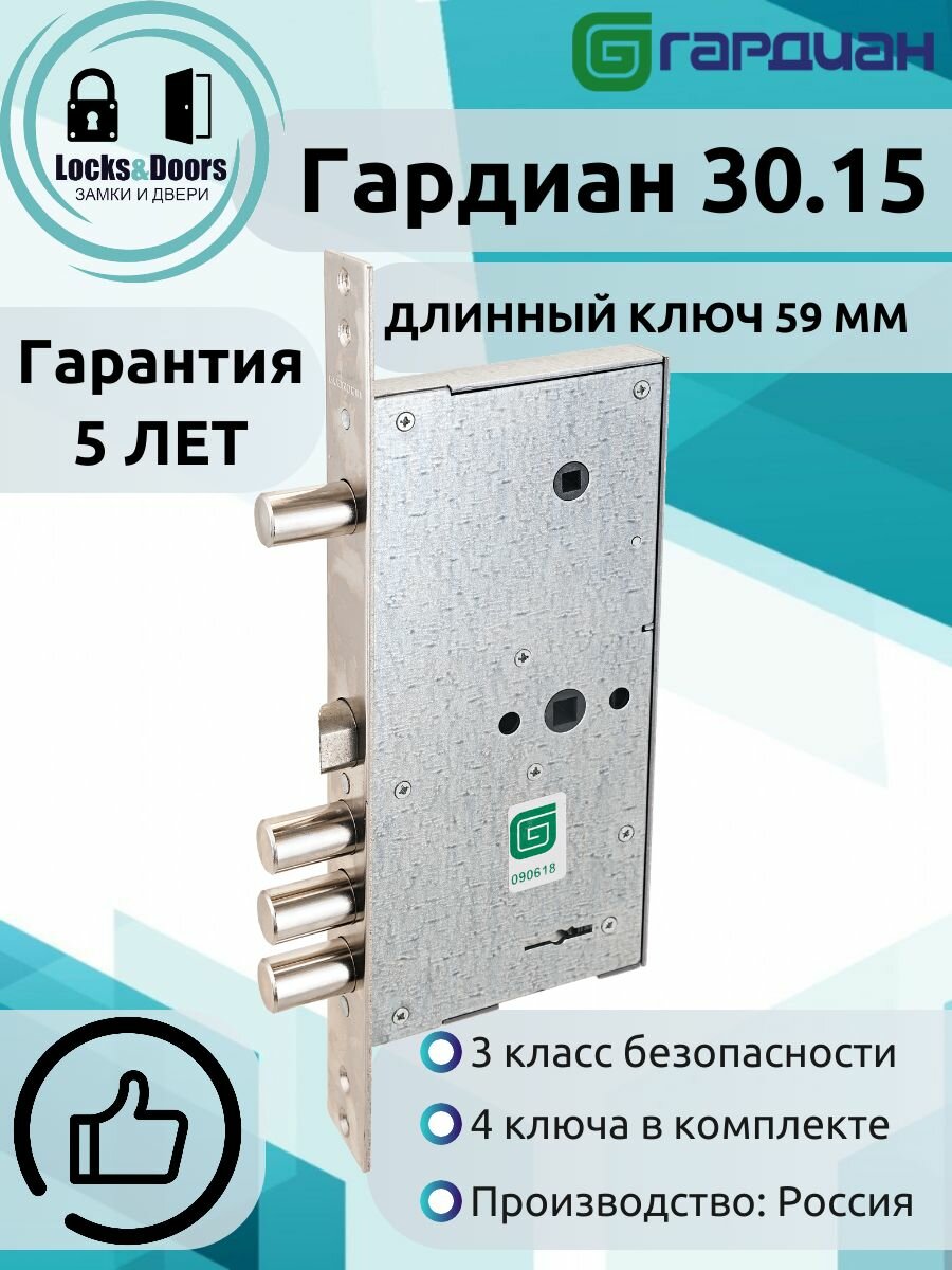 Купить Замок врезной сувальдный с задвижкой и защёлкой Guardian (Гардиан) ЗВ 30.15 4 ключа (длинный ключ 59 мм) с доставкой по всей России.