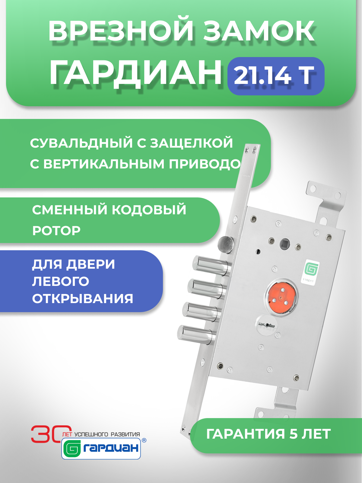 Замок врезной сувальдный с защелкой, сменным кодовым ротором и вертикальным приводом Гардиан 21.14 Т левый: сравнение цен, характеристики, фото, актуальное наличие и цены.