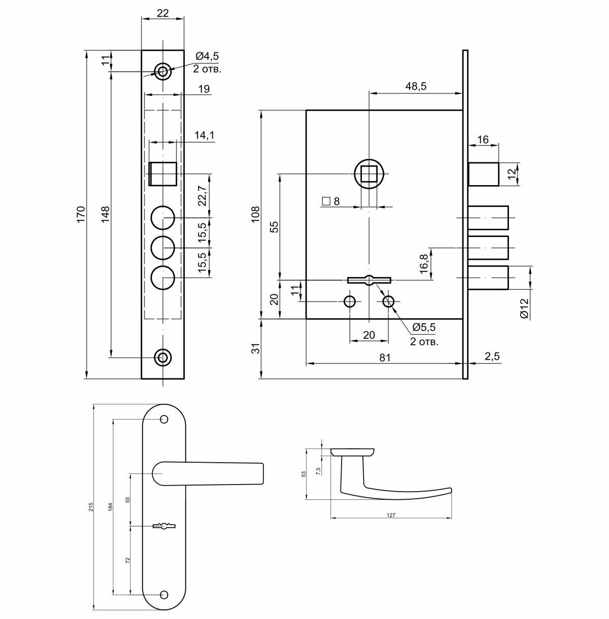 Замок врезной универсальный с ручками черный 77305 Просам 9-6/13 Рязань