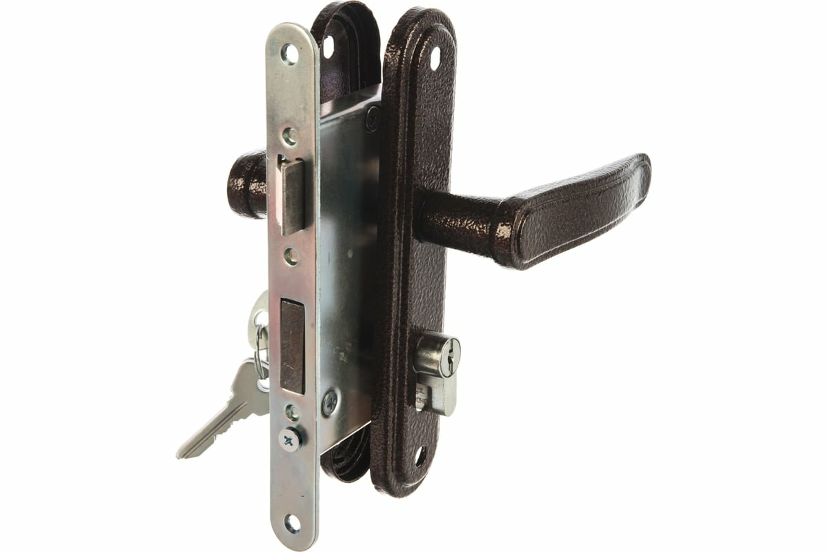 Замок врезной цилиндровый с защёлкой в комплекте с ручкой Зенит (замки) зенит ЗВ4-3.04 (медь), 4 кл.