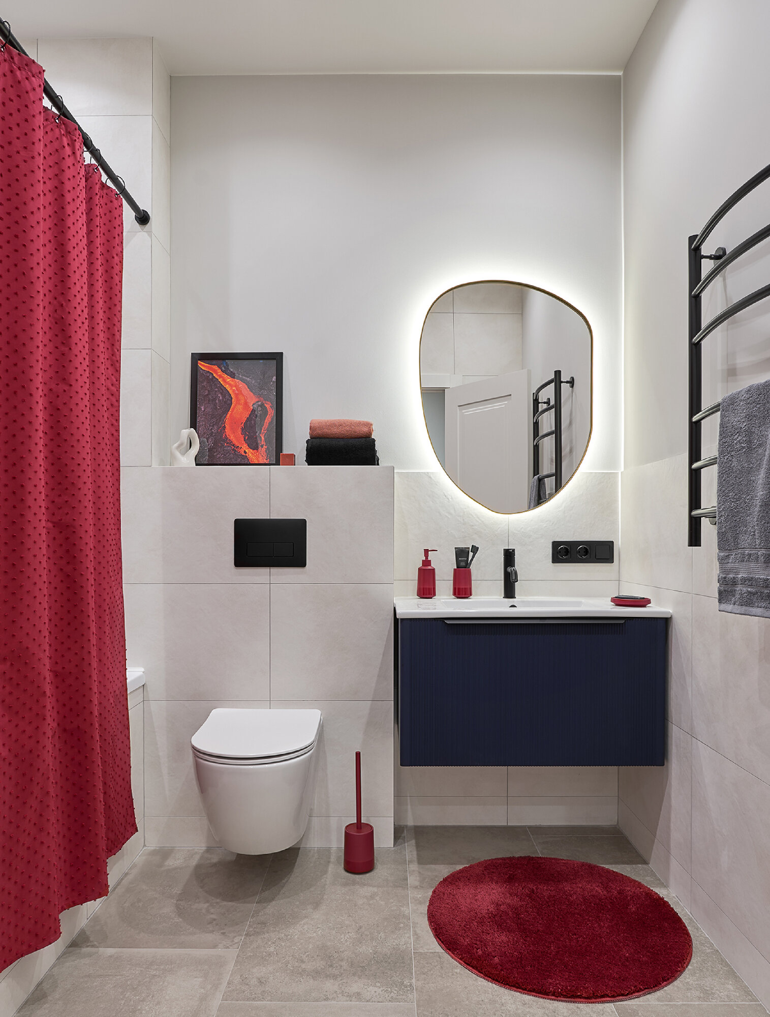 Купить Занавеска (штора) Magma для ванной комнаты тканевая 180х200 см, цвет красный с доставкой по всей России.
