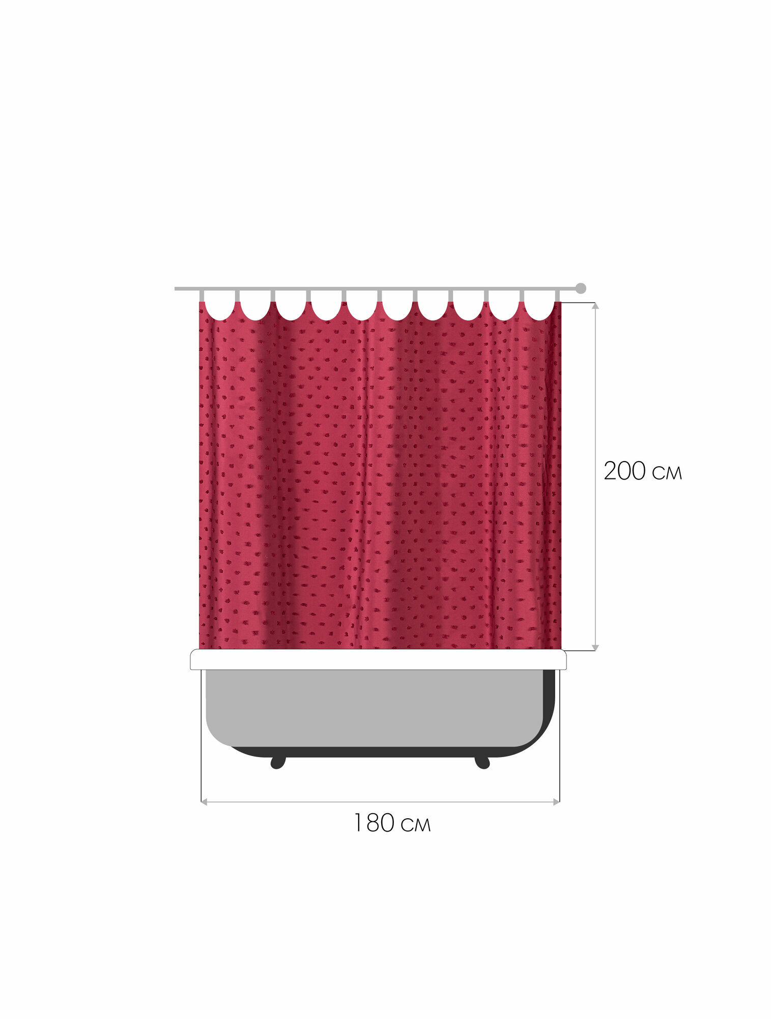 Занавеска (штора) Magma для ванной комнаты тканевая 180х200 см, цвет красный: сравнение цен, характеристики, фото, актуальное наличие и цены.
