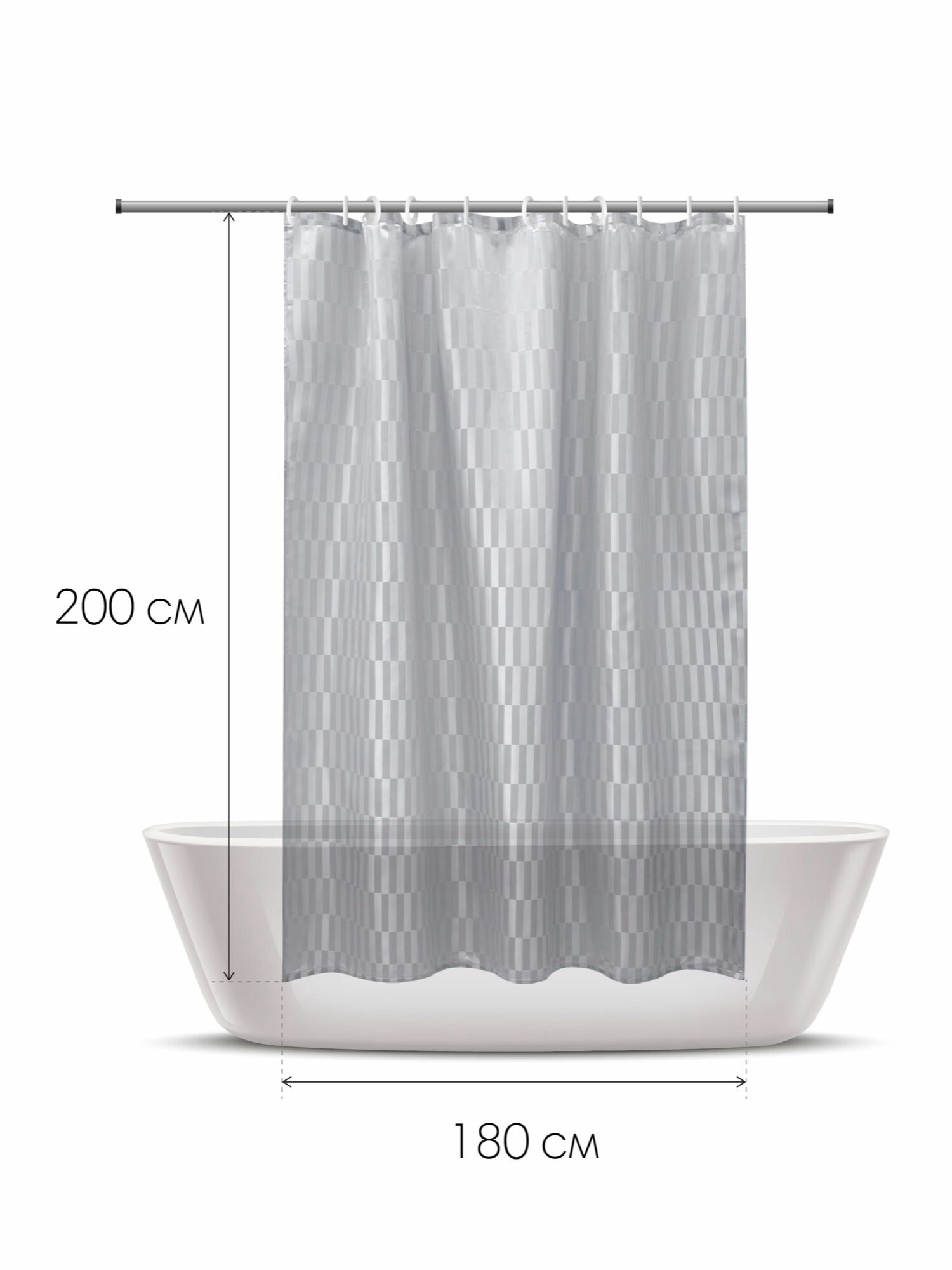 Штора для ванной тканевая полиэстер серый 180х200 см, на кольцах / шторка для душа водоотталкивающая: сравнение цен, характеристики, фото, актуальное наличие и цены.