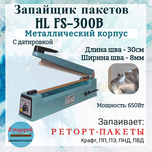 Запайщик пакетов HL FS-300B в металлическом корпусе, шов 8мм на 300мм, выставление даты, паяет реторт пакеты: сравнение цен, характеристики, фото, актуальное наличие и цены.