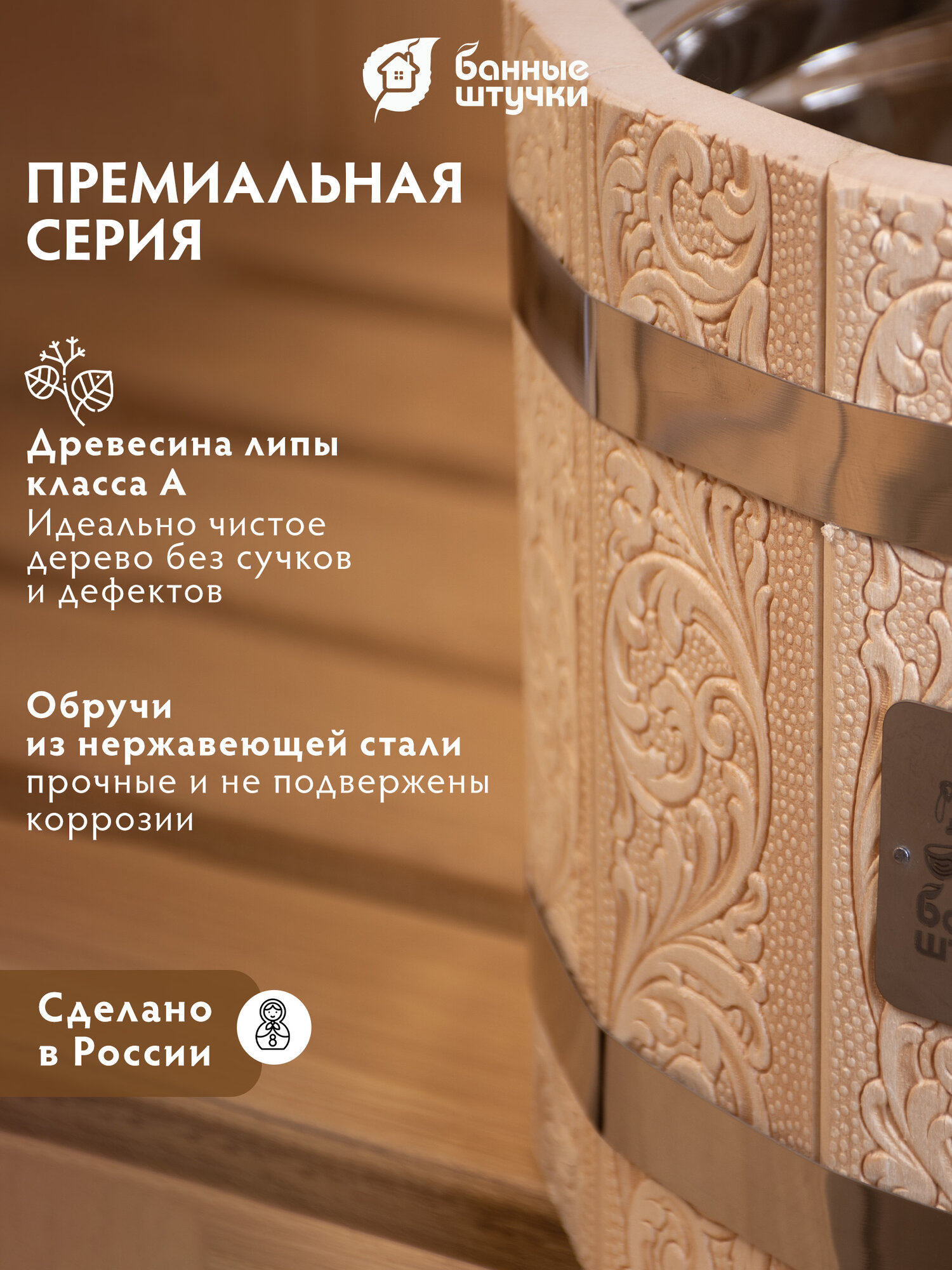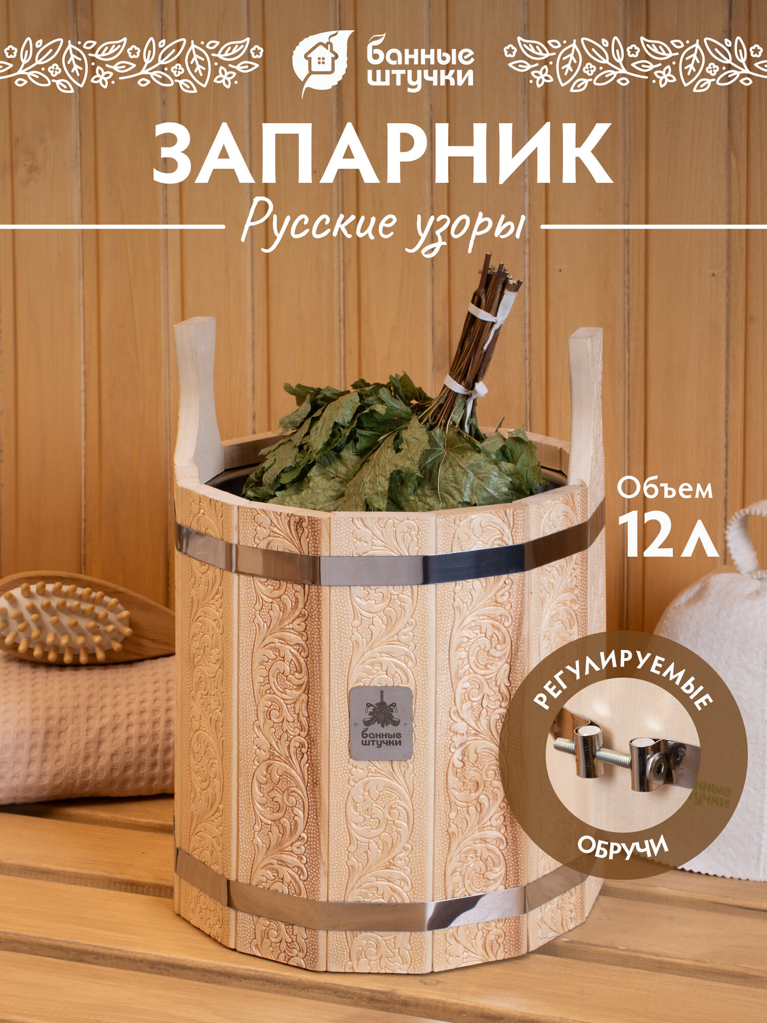 Запарник "Банные штучки" - это бондарное изделие, которое станет незаменимым аксессуаром для вашей бани или сауны.