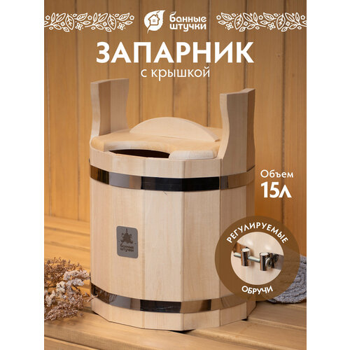 Запарник для бани для веника 15 л, с крышкой, система регулировки обручей, без вставки, липа «Банные штучки»: сравнение цен, характеристики, фото, актуальное наличие и цены.