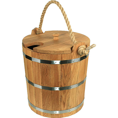 Прочный и долговечный дубовый запарник большого объема, он подойдет для семейного отдыха, большой компании. Масляная пропитка придает древесине водоотталкивающие свойства и выявляет её красивую текстуру, создает благородный оттенок. Благодаря вставке из нержавейки полностью исключены протечки корпуса. Крышка поможет более качественно распарить веники, лучше сохраняя тепло и не давая веникам всплыть. В ней имеются специальные вырезы для ручек веников. Оригинальная веревочная ручка не только придает изделию особый деревенский стиль, но и надежно оберегает руки от ожога, поскольку не нагревается до высокой температуры.