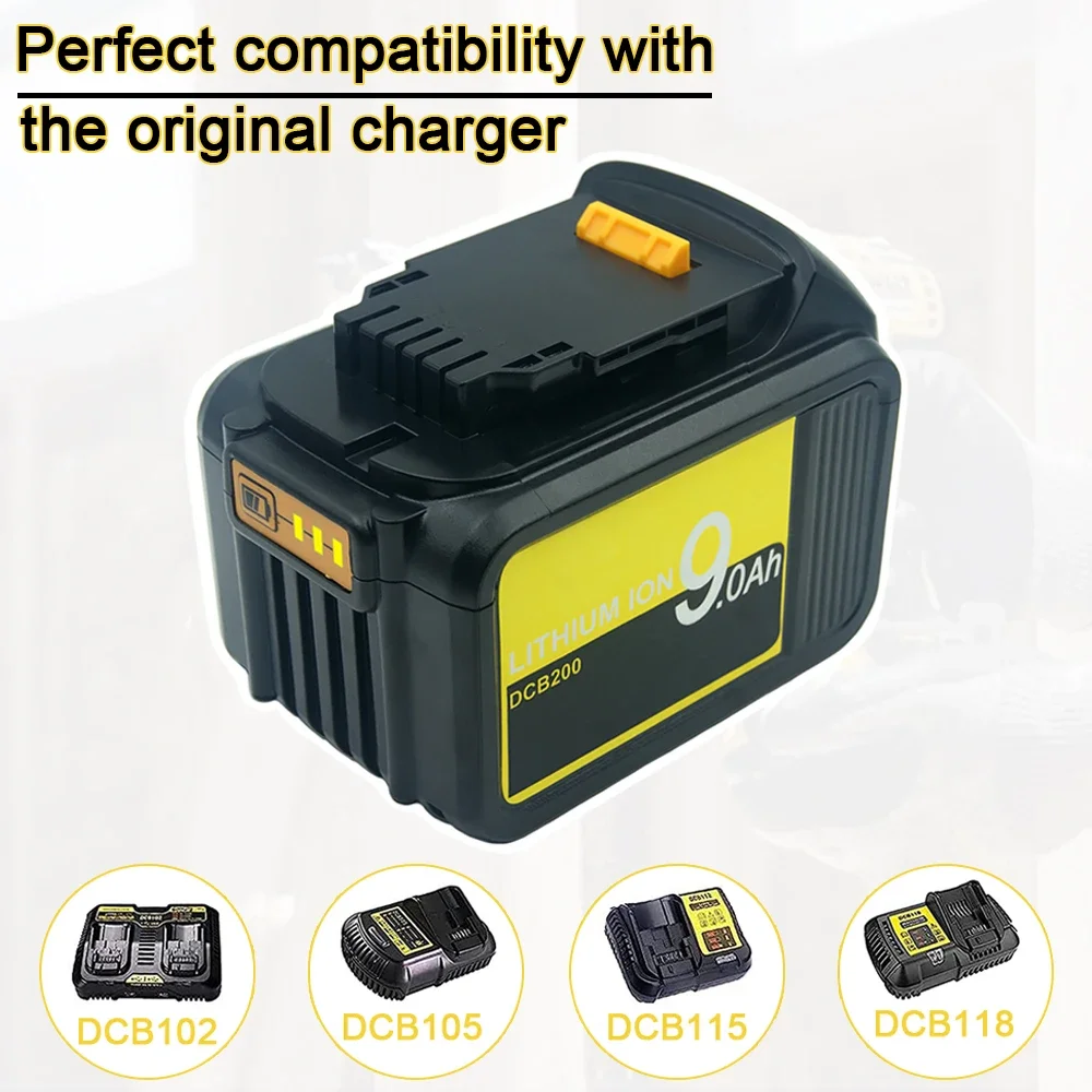 Запасной литий-ионный аккумулятор 9.0A, подходит для инструмента Dewalt 18V/20V DCB180 DCB181 DCB181 xj DCB200 DCB200 200 - 2, высокого качества, полностью совместимая. Не оpuгинал!
