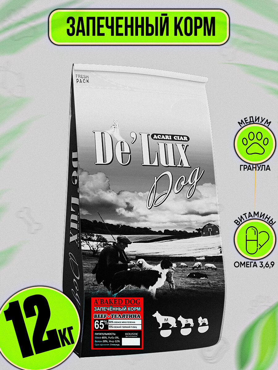 Запеченный сбалансированный сухой корм класса холистик с мясом телятины для взрослых средних и мелких собак всех пород