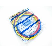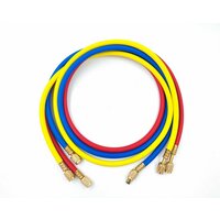 Комплект состоящий из 3-х заправочных шлангов по 1.5м для заправки и вакуумирования кондиционеров. Шланги зарядные, предназначены для соединения манометрической станции с баллоном фреона или вакуумным насосом и холодильным оборудованием. В качестве уплотнения используются фторопластовые или резиновые манжеты. Для работы с фреонами: R-12, R22, R134, R404A, R407C, R507, R600; с адаптером 5/16" SAE с фреонами: R410 и R32. В комплекте: 3 шланга, присоединительные размеры (1/4" SAE x 1/4" SAE)