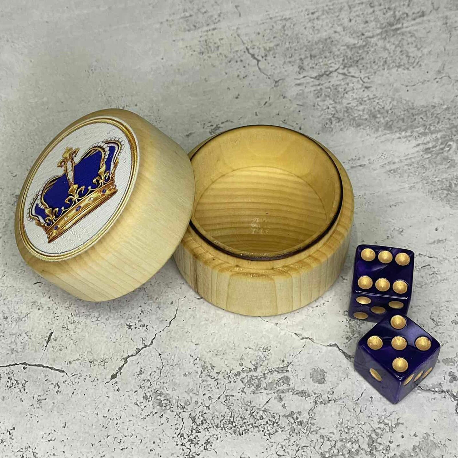 Купить Зарики для нард в деревянном бочонке «Корона», размер зариков 15*15 мм с доставкой по всей России.