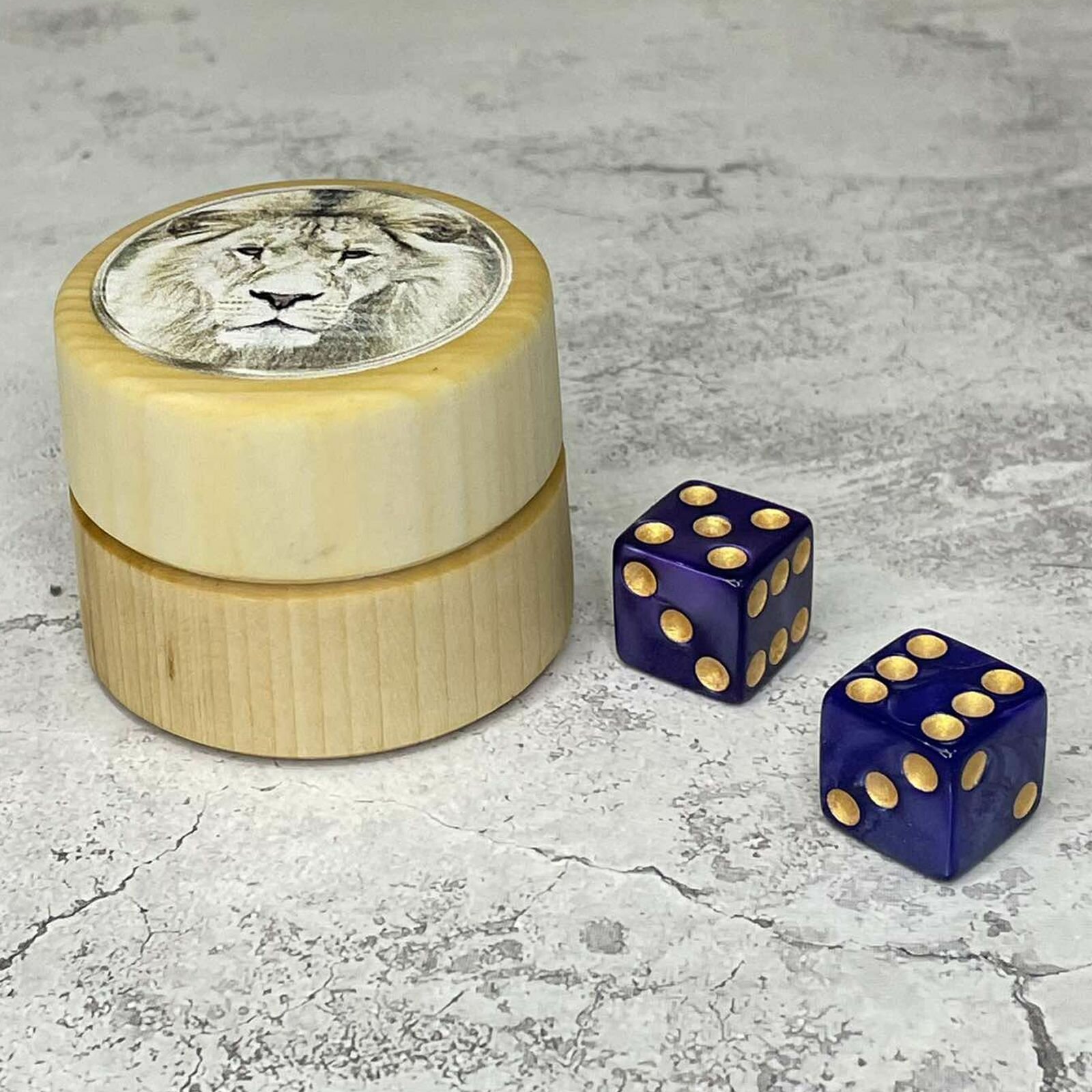 Купить Зарики для нард в деревянном бочонке «Лев», размер зариков 15*15 мм с доставкой по всей России.