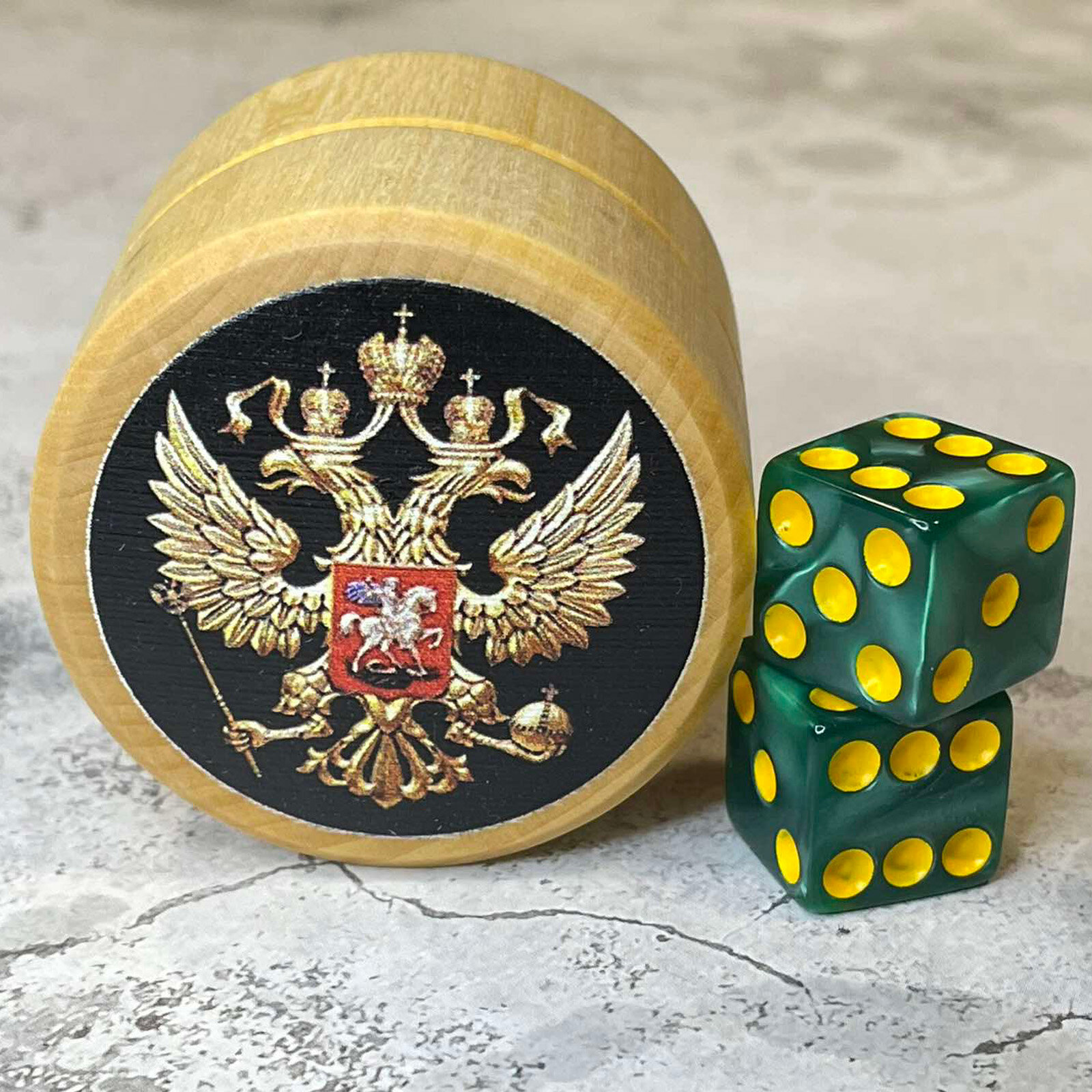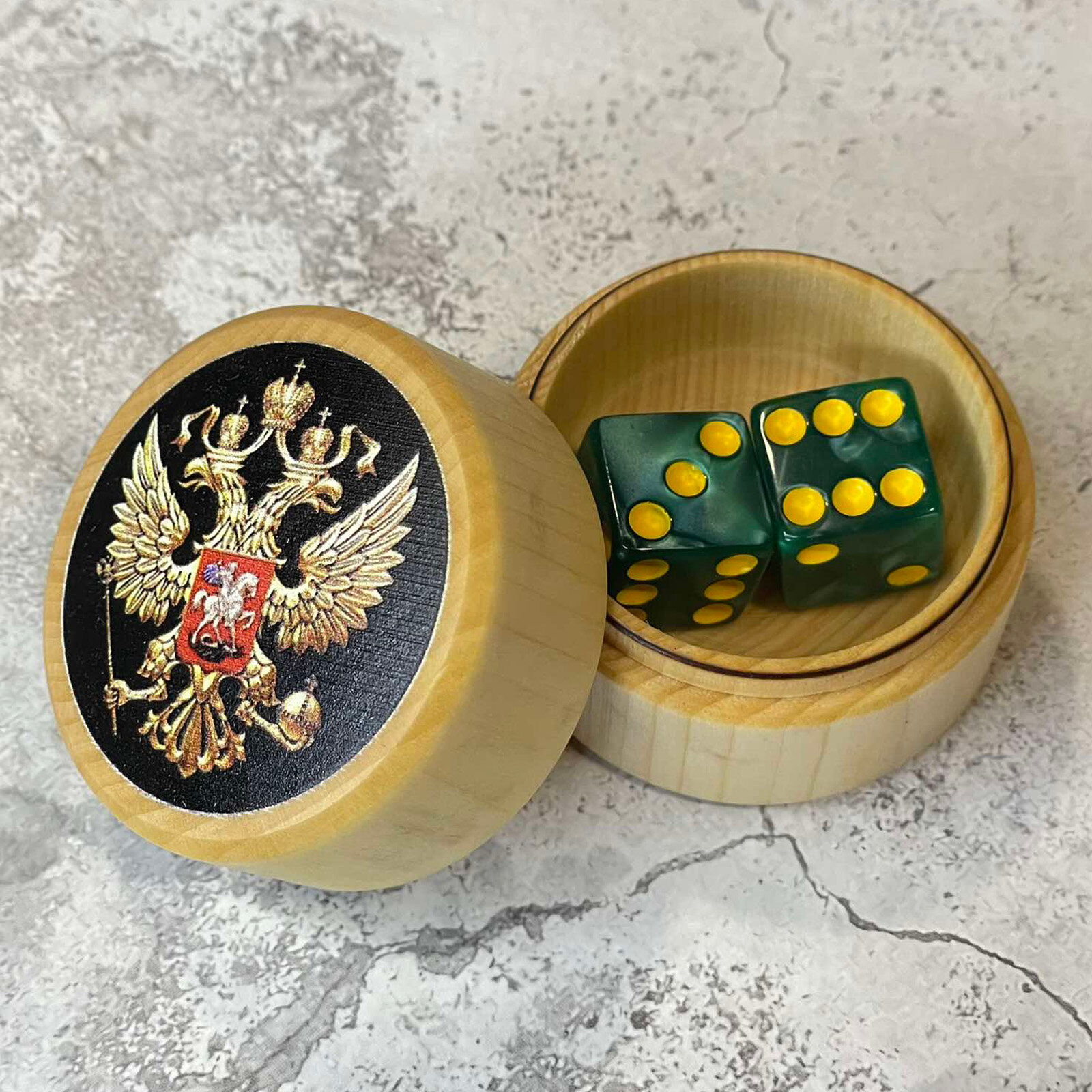 Купить Зарики для нард в деревянном бочонке «Россия», размер зариков 15*15 мм с доставкой по всей России.