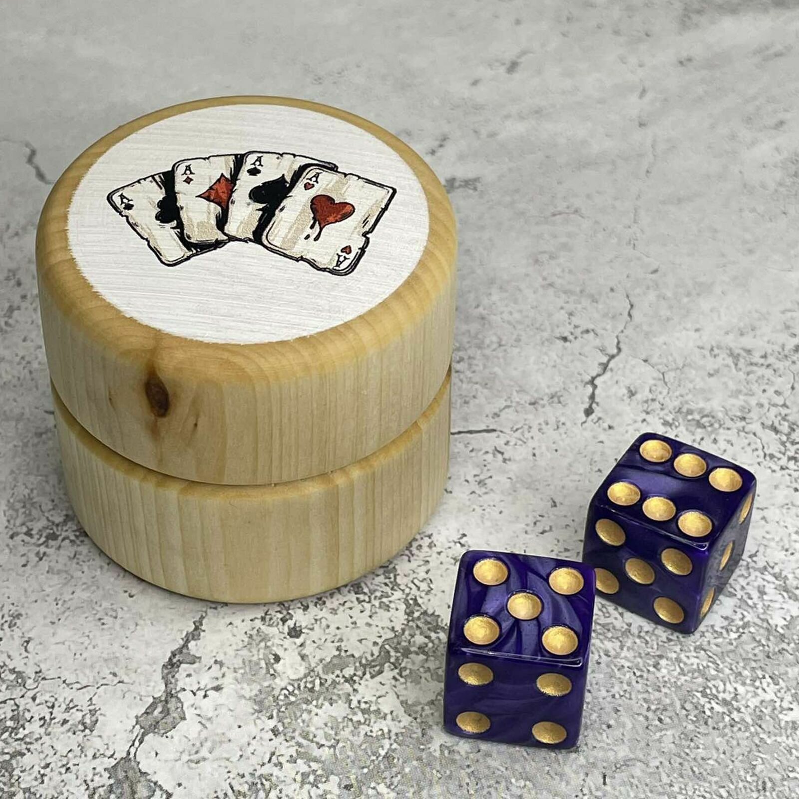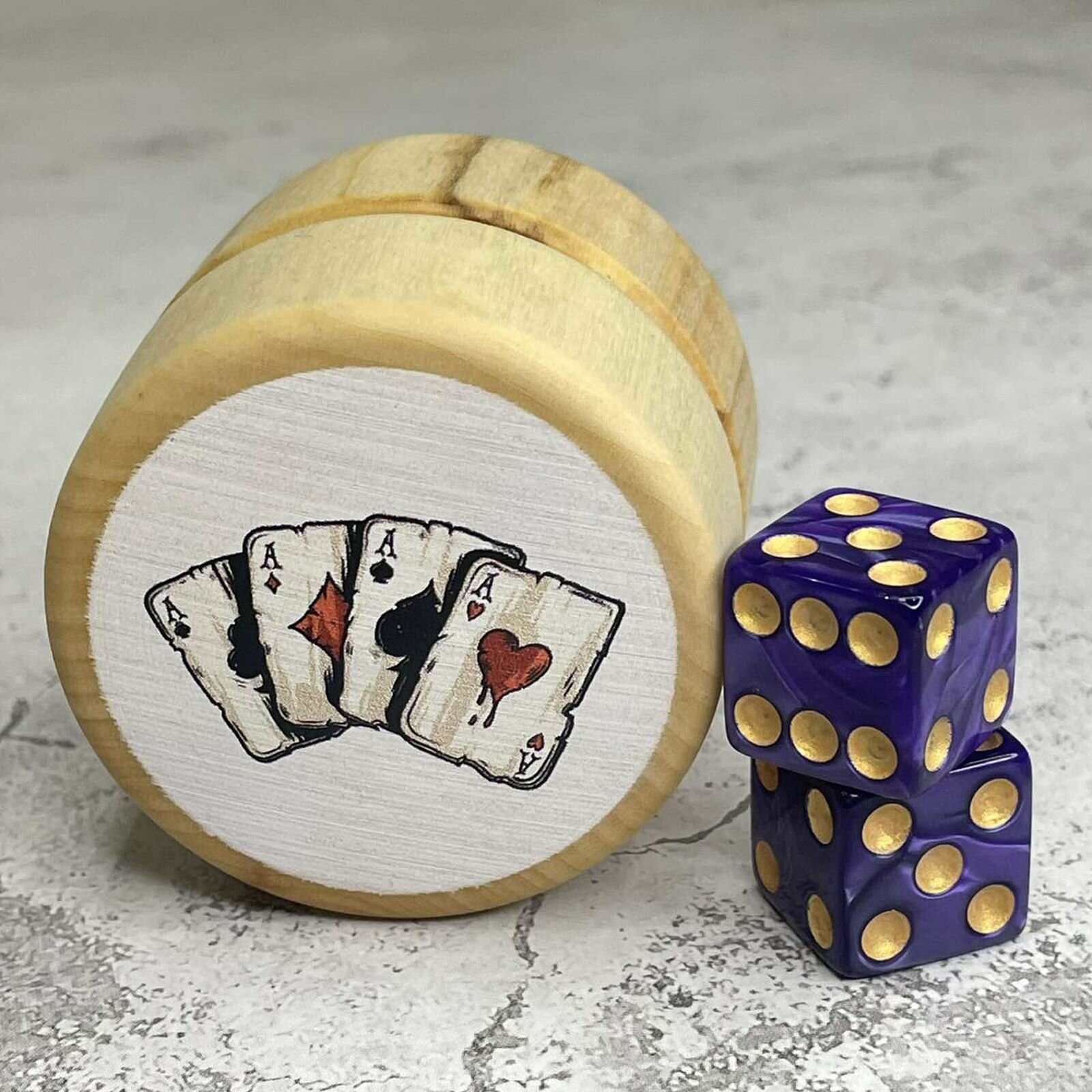 Купить Зарики для нард в деревянном бочонке «Тузы», размер зариков 15*15 мм с доставкой по всей России.