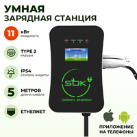 Купить Зарядная станция для электромобиля S’OK Green Energy 11кВт 5м кабель TYPE2 Ethernet с доставкой по всей России.
