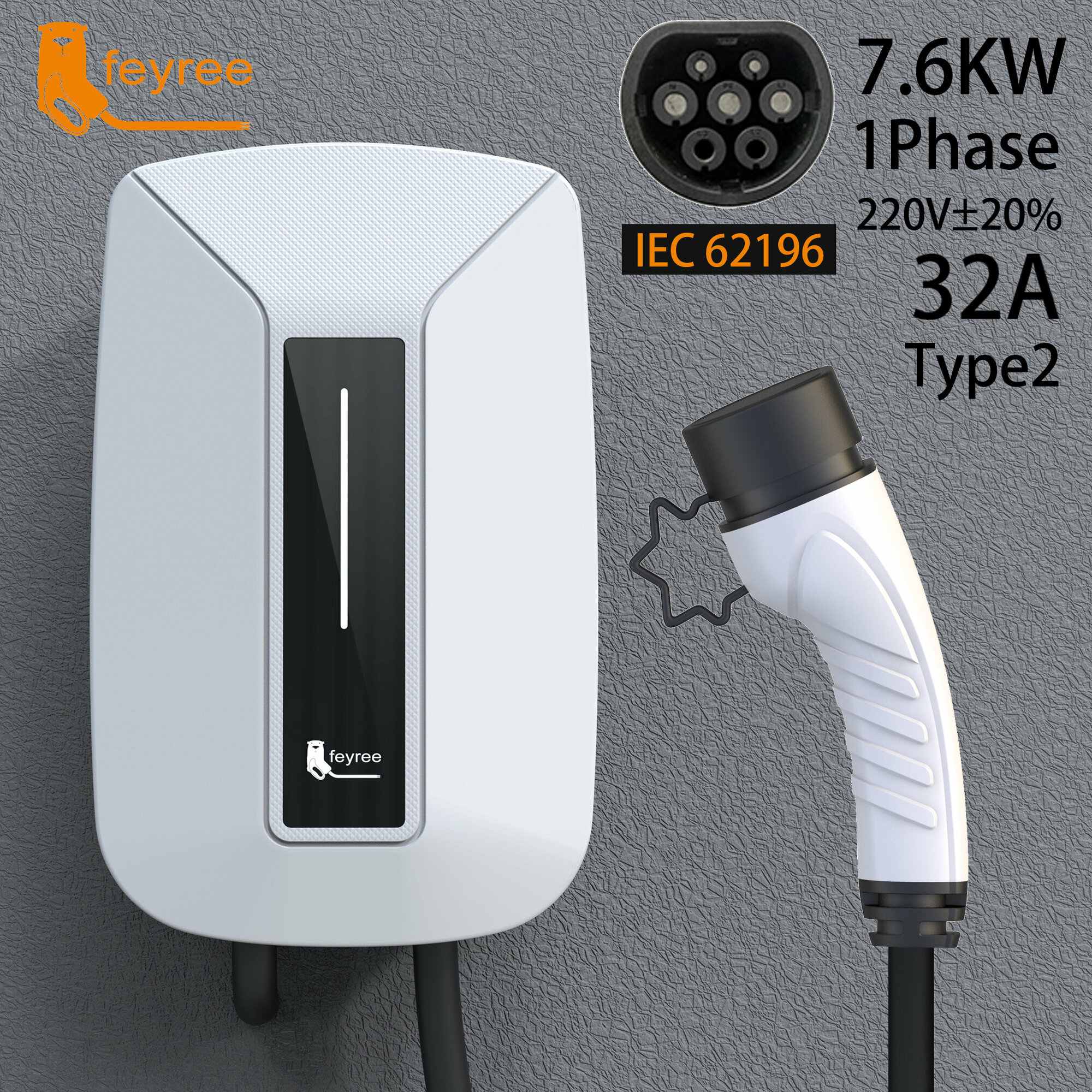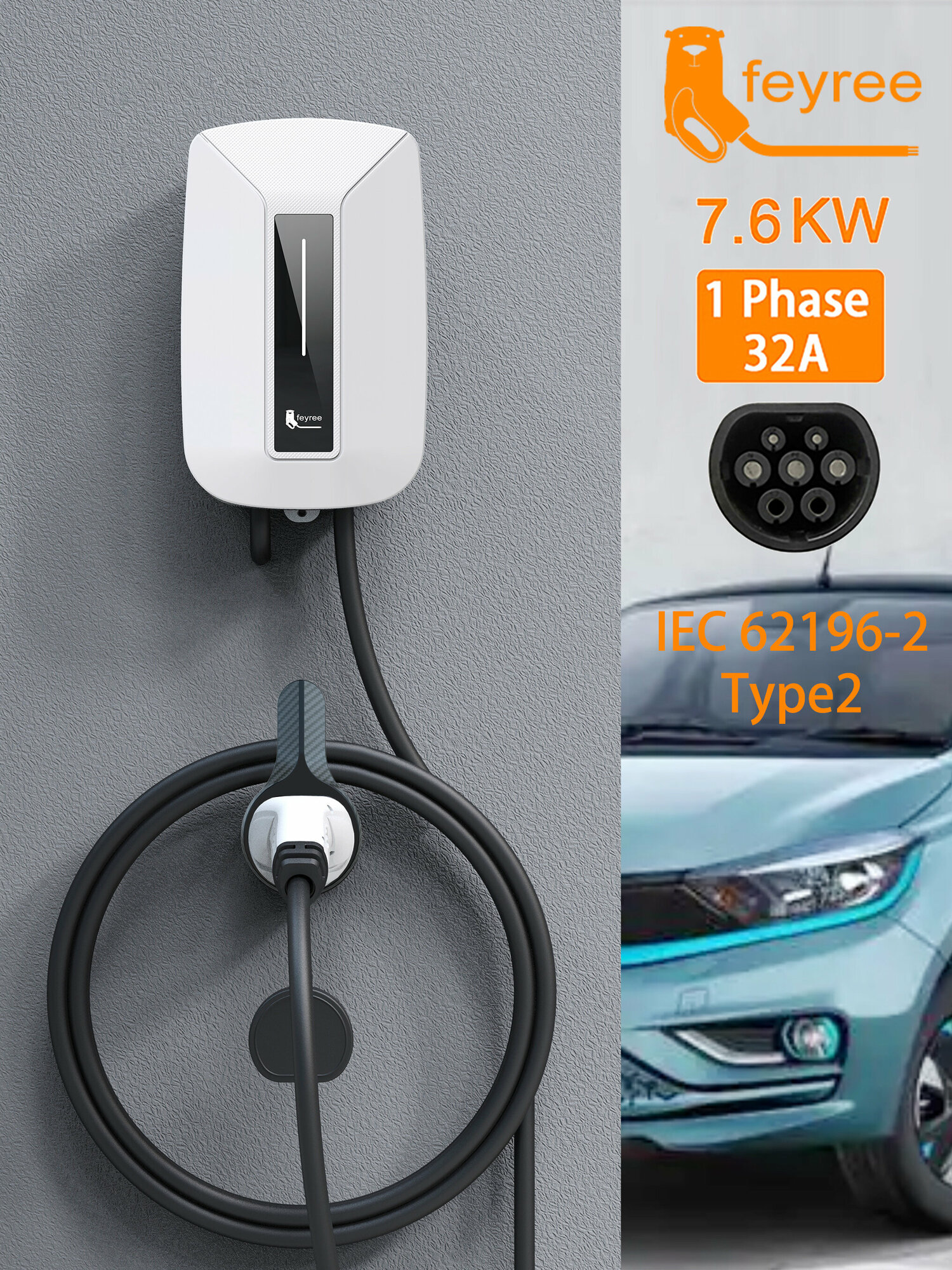 Купить Зарядная станция для электромобиля FEYREE с кабелем T2 5м 7 кВт 32 A 1 фаза с доставкой по всей России.