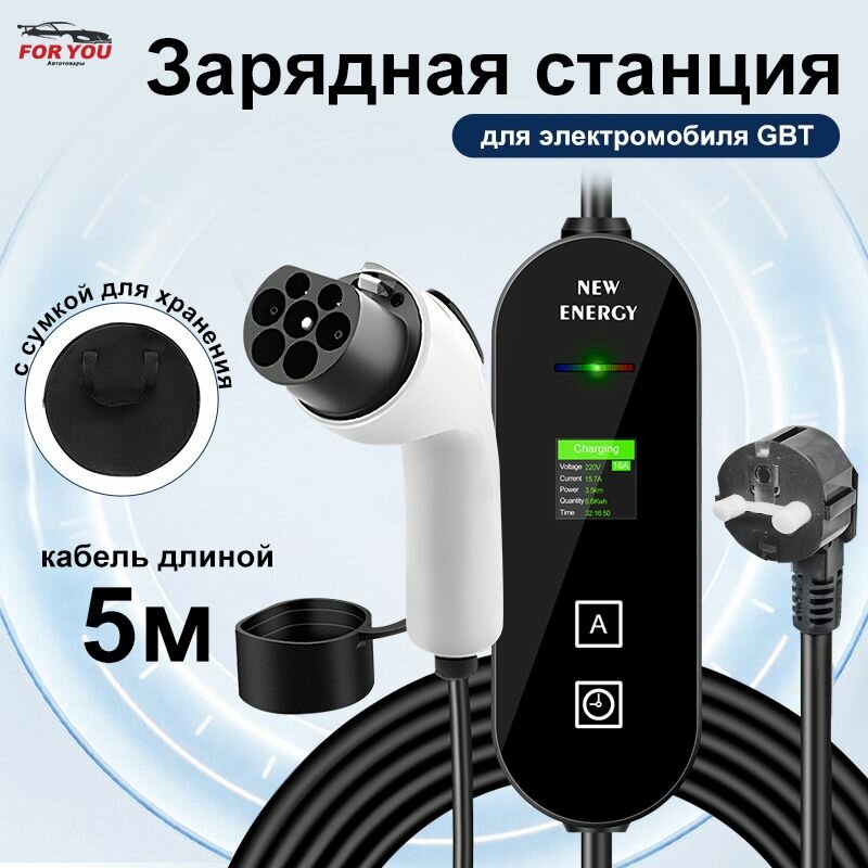 Купить Зарядная станция для электромобиля GBT 8-16А 220В 3,5 кВт, с сумкой с доставкой по всей России.