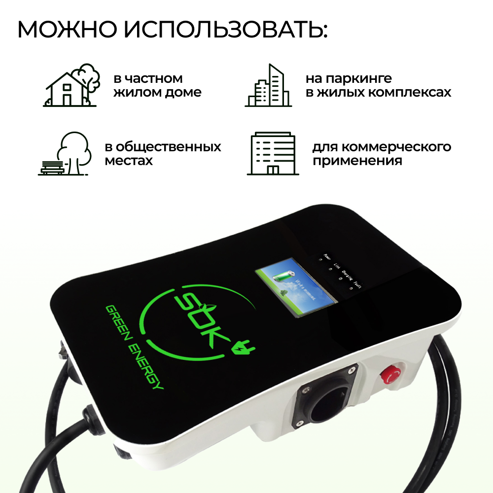 Купить Зарядная станция для электромобиля S’OK Green Energy 7кВт 5м кабель TYPE2 Ethernet с доставкой по всей России.
