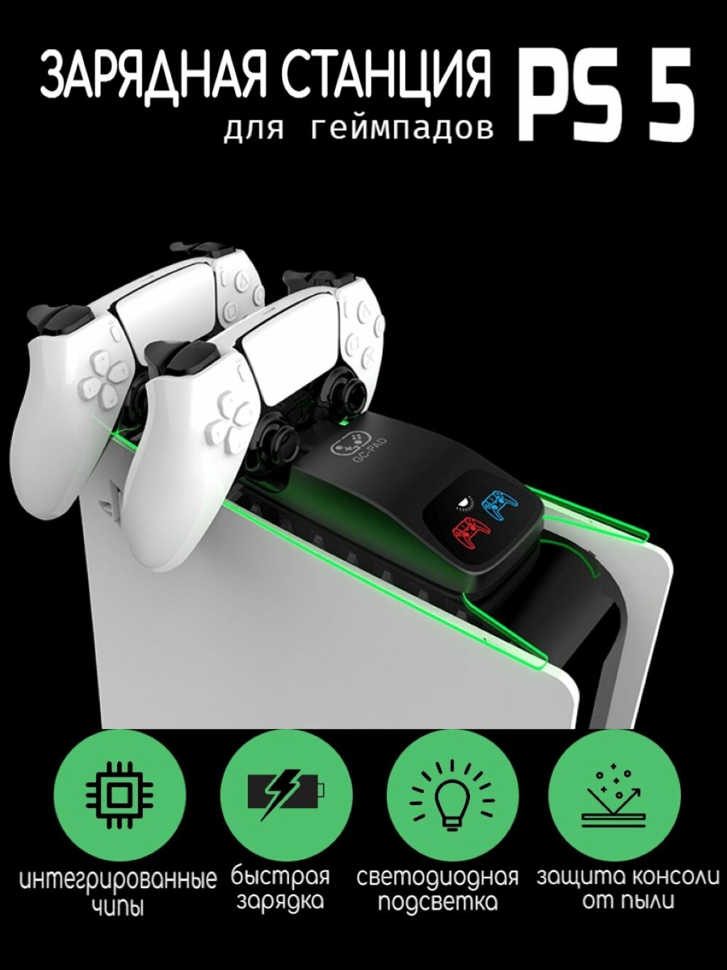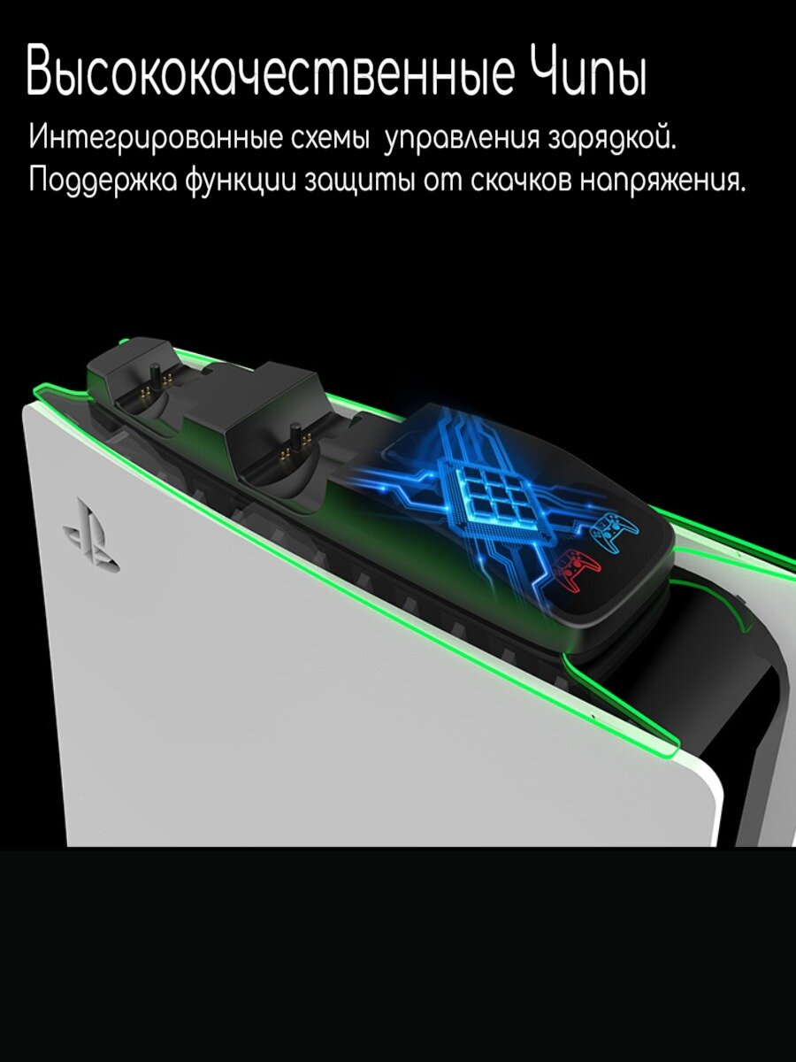 Зарядное устройство для джойстиков PlayStation 5 – незаменимый аксессуар для владельцев консоли sony, которое обеспечивает быструю и удобную зарядку двух геймпадов одновременно. Эта подставка создана специально для зарядки контроллеров Dualsense, чтобы поддерживать ваши гаджеты всегда готовыми к игре. Она оснащена интеллектуальным чипом для определения состояния зарядки, который обеспечивает быструю зарядку, два контроллера можно полностью зарядить за 2 часа. Док-станция для геймпадов ps5 легко устанавливается на консоль и надежно фиксируется, что экономит место и делает использование максимально комфортным. Зарядная станция для 2-х Dualsense имеет современный дизайн с регулируемой подсветкой, которая добавляет стильный акцент вашему игровому пространству и визуально информирует о процессе зарядки. Благодаря продуманной конструкции подставка для геймпадов с зарядкой позволяет размещать два устройства на плейстейшен 5, предотвращая их случайное падение или повреждение. Теперь ваши джойстики будут находиться в одном месте и готовы к новым игровым достижениям. Беспроводная зарядка для джойстиков совместима со всеми моделями геймпадов sony playstation 5 обеспечивая быструю зарядку без необходимости использования отдельных проводов для каждого аксессуара. Это особенно удобно во время длительных игровых сессий: просто поставьте оба gamepad на док, и они начнут заряжаться автоматически. Индикация на корпусе зарядной базы показывает статус заряда контроллеров. Док-станция с установкой на консоль выполнена из прочных материалов высокого качества, устойчивых к царапинам и механическим воздействиям. Ее эргономичная и продуманная конструкция позволяет использовать аксессуар как часть общей игровой приставки пс5. Крепление подставки к консоли не требует специальных инструментов — установка занимает всего несколько секунд без усилий и дополнительных инструментов. А подсветка зарядки создает приятную атмосферу во время игр вечером или ночью. Dexgame - игры начинаются здесь.