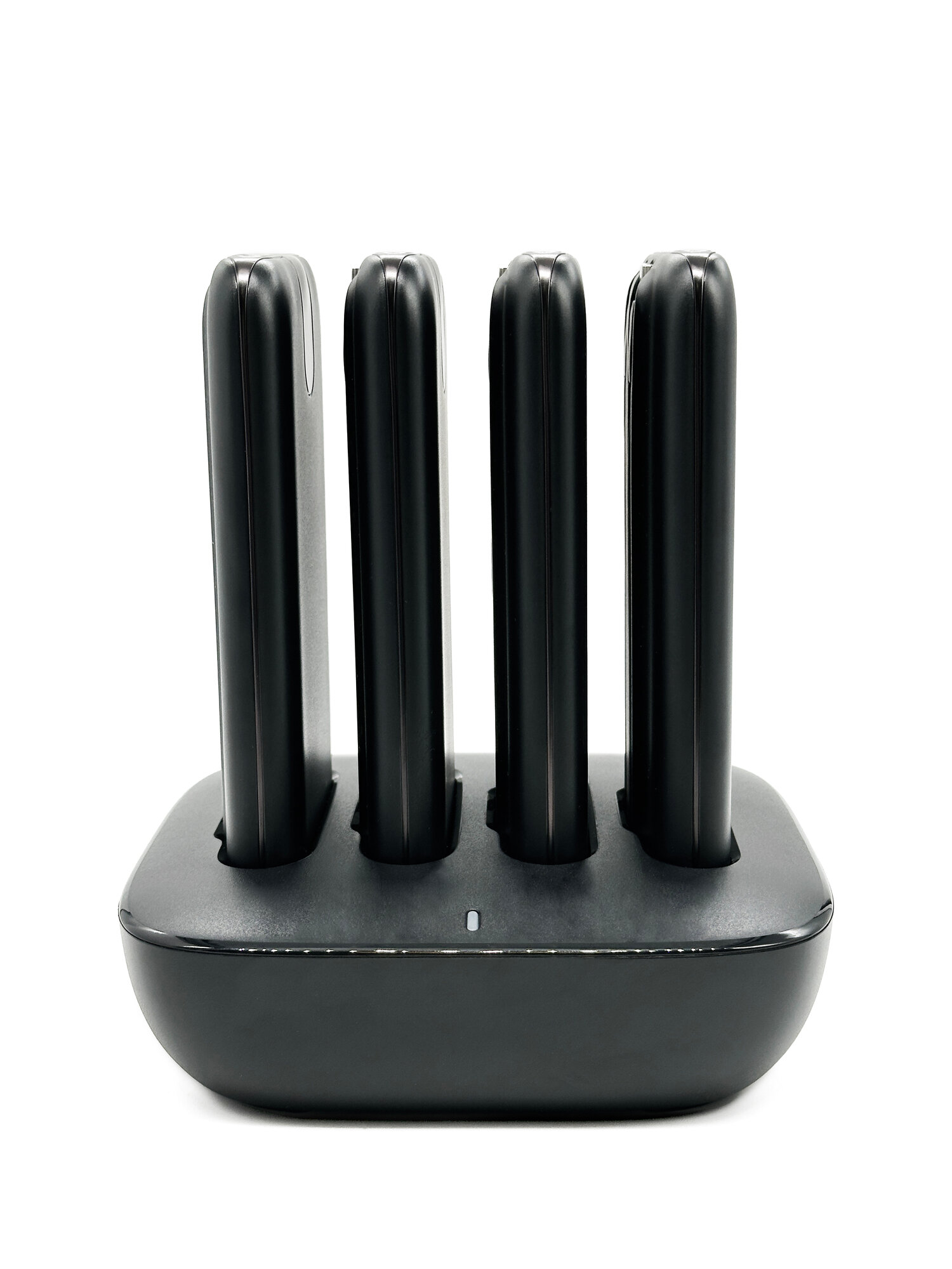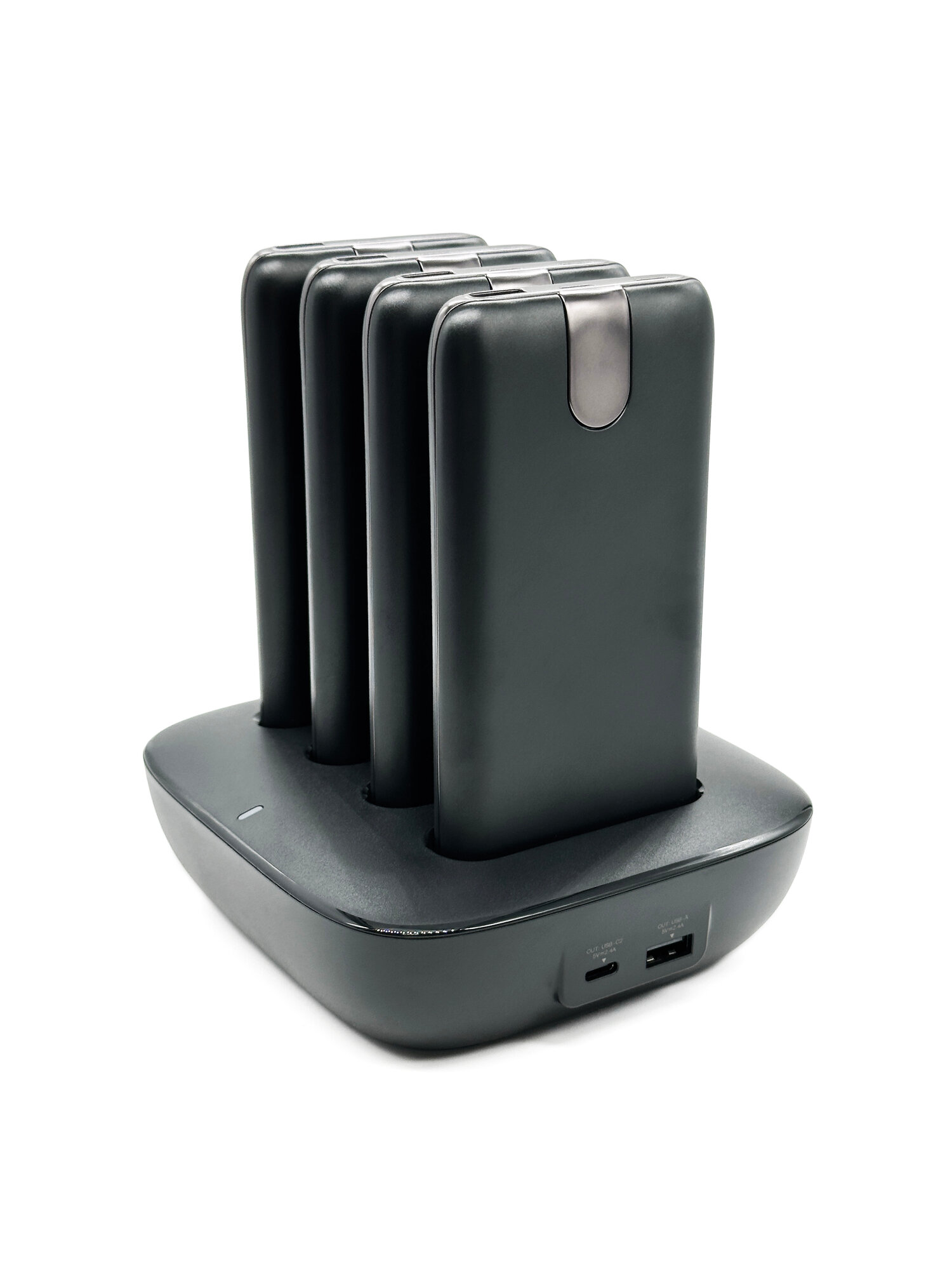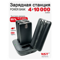 Купить Зарядная станция для внешних аккумуляторов 10000 mAh WST WP0264 с коннектором Type-C и Lightning комплект из 4 PowerBank, черная с доставкой по всей России.
