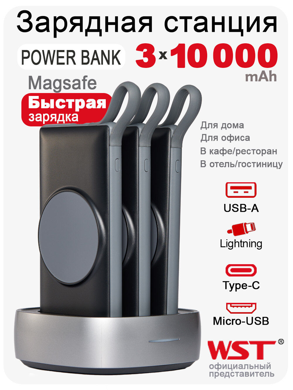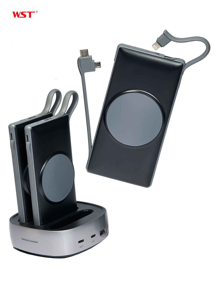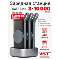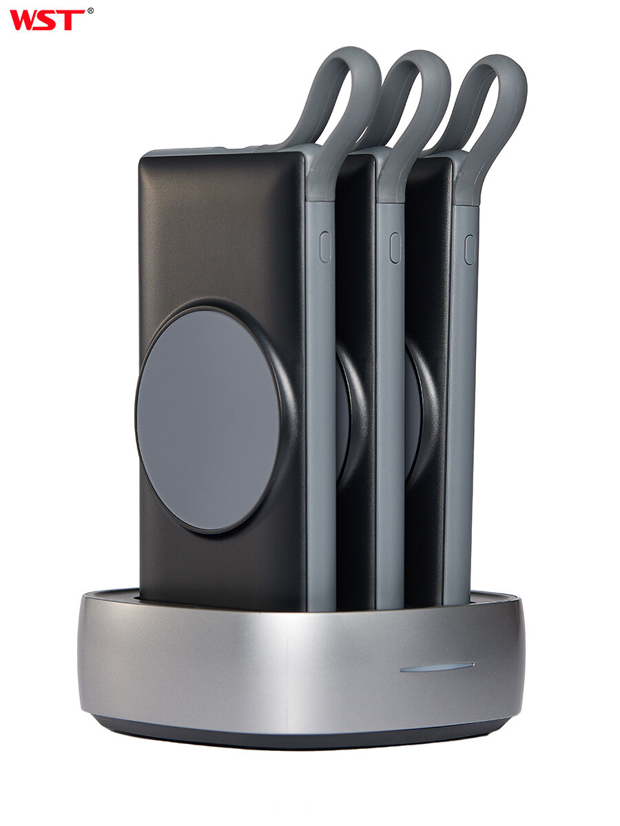 Зарядная станция для внешних аккумуляторов WST Alpha magsafe 3 со встроенными проводами и беспроводной зарядкой