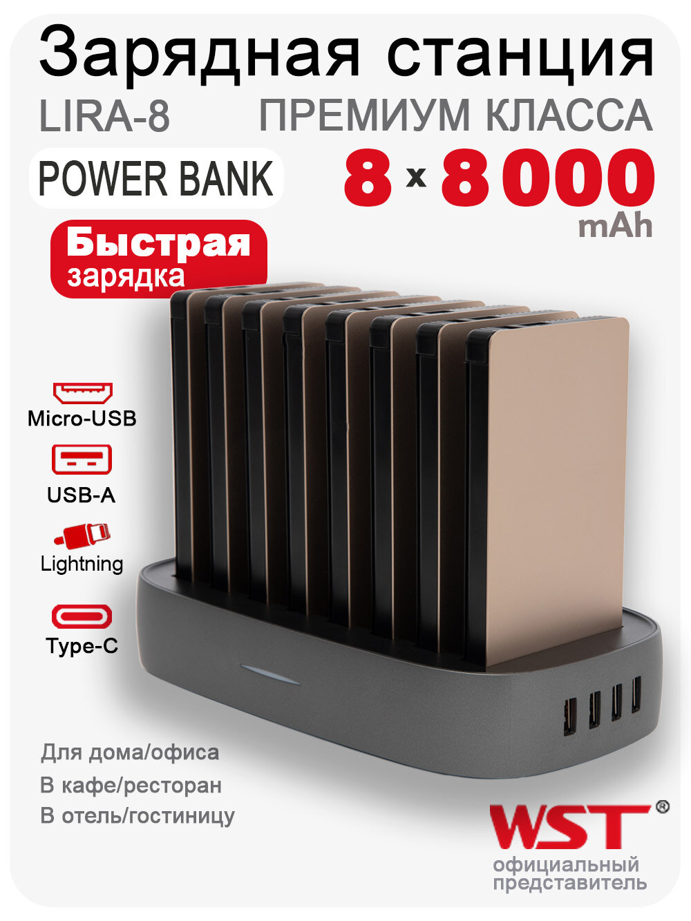 Купить Зарядная станция для внешних аккумуляторов WST Lira 8 Business (Встроенные провода type-c, micro usb, lighting) с доставкой по всей России.