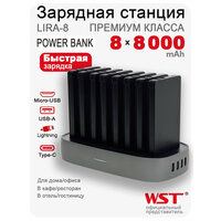 Купить Зарядная станция для внешних аккумуляторов WST Lira 8 Business (Встроенные провода type-c, micro usb, lighting) с доставкой по всей России.