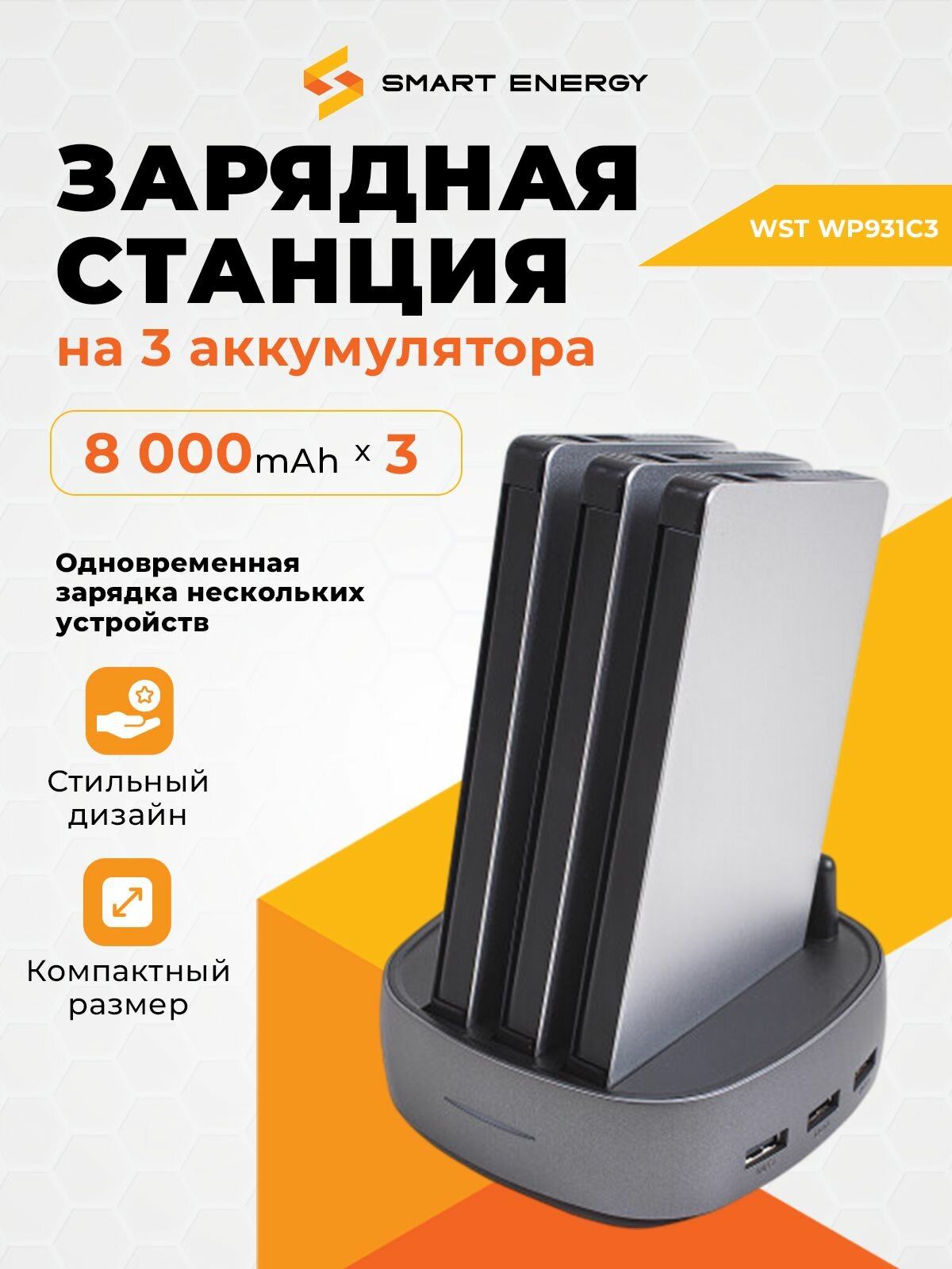 Зарядная станция для внешних аккумуляторов WST WP931C3 на 3 аккумулятора повербанк (Type C, Micro USB, Lightning): сравнение цен, характеристики, фото, актуальное наличие и цены.