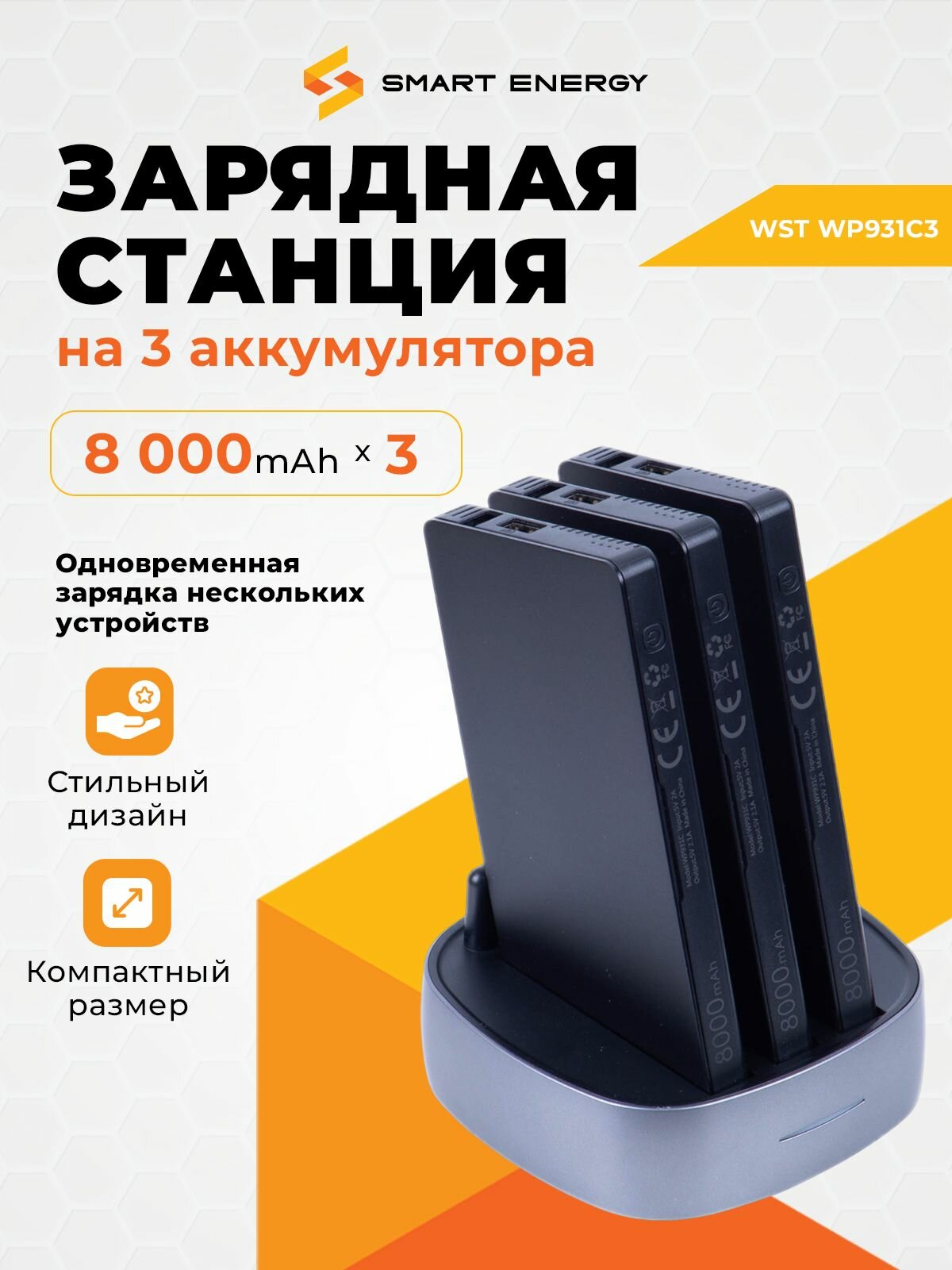 Зарядная станция для внешних аккумуляторов WST WP931C3 на 3 аккумулятора повербанк (Type C, Micro USB, Lightning): сравнение цен, характеристики, фото, актуальное наличие и цены.