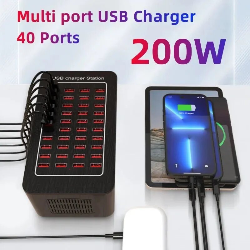 Зарядная станция оснащена 40 разъемами USB, что позволяет одновременно заряжать до 40 устройств. Максимальная выходная мощность составляет 200 Вт, а максимальный выходной ток – 2.4 А. Это обеспечивает быструю и эффективную зарядку ваших устройств.