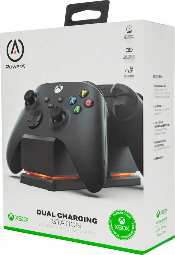 Зарядная станция Xbox One, официально лицензированная Xbox, позволяет отказаться от замены батарей. Держите свои беспроводные контроллеры Xbox One полностью заряженными и готовыми к игре! Уровень заряда батареи контроллера отображается на экране, так что не нужно отводить взгляд от происходящего. Каждая зарядная станция включает в себя 2 отсека для сквозной зарядки и 2 аккумуляторных блока, рассчитанных на несколько часов игрового процесса. Чтобы зарядить, просто нажмите контроллер на зарядную станцию и увидите светодиодные индикаторы, указывающие уровень заряда. При полной зарядке нажмите вверх, чтобы сохранить. Заряжает и отображает беспроводные геймпады Xbox Series X|S или Xbox OneВключает в себя две перезаряжаемые батареи емкостью 1100 мАч и четыре батарейных отсека. Защелкивающаяся конструкция зарядки со светодиодным индикатором смены цветаПитание от адаптера переменного тока, чтобы порты USB оставались свободнымиОфициальная лицензия для Xbox Series X|S