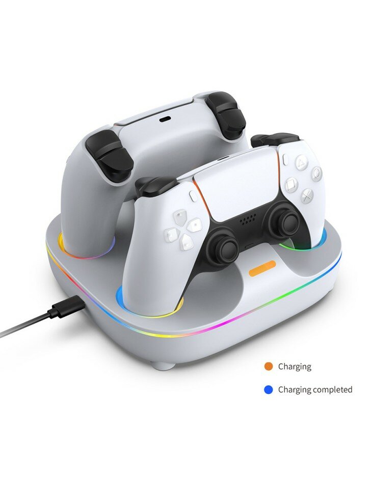 Зарядная станция с RGB подсветкой для 2х геймпадов DualSense PS5 (Dobe TP5-35115) White: сравнение цен, характеристики, фото, актуальное наличие и цены.