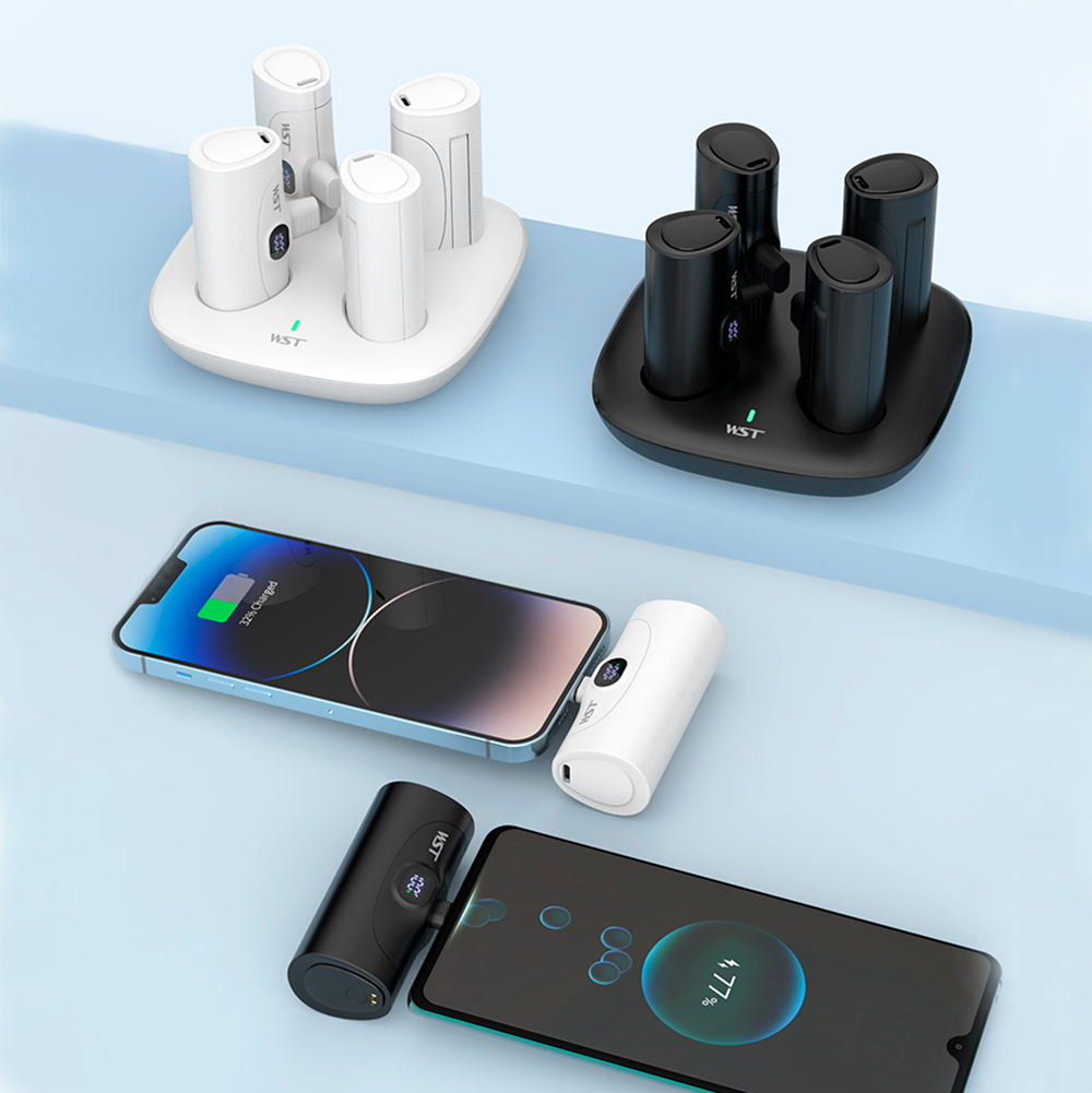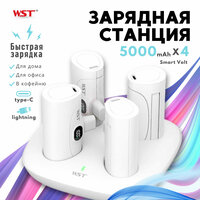 Купить Зарядная станция WST Smart Volt 4×5000 mAh с коннектором Type-C и Lightning комплект из 4 PowerBank с доставкой по всей России.