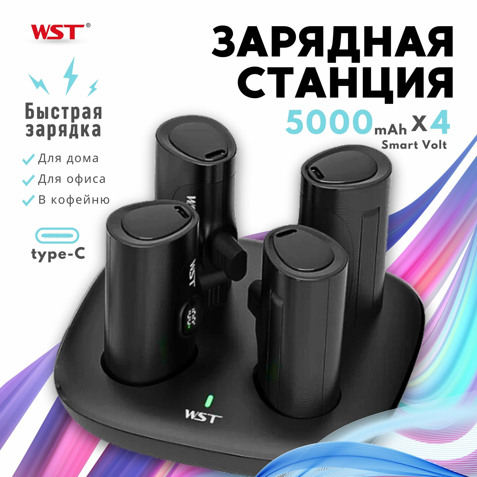 Купить Зарядная станция WST Smart Volt 4×5000 mAh с коннектором Type-C и lightning комплект из 4 PowerBank с доставкой по всей России.