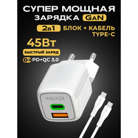 Зарядное устройство, быстрая GaN зарядка для телефона, 3А, 45Вт, кабель Type-C-Type-C, зарядка на айфон, белое: сравнение цен, характеристики, фото, актуальное наличие и цены.
