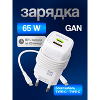 Зарядное устройство, быстрая GaN зарядка для телефона, 3А, 65Вт, кабель Type-C-Type-C, блок питания на айфон, белое: сравнение цен, характеристики, фото, актуальное наличие и цены.