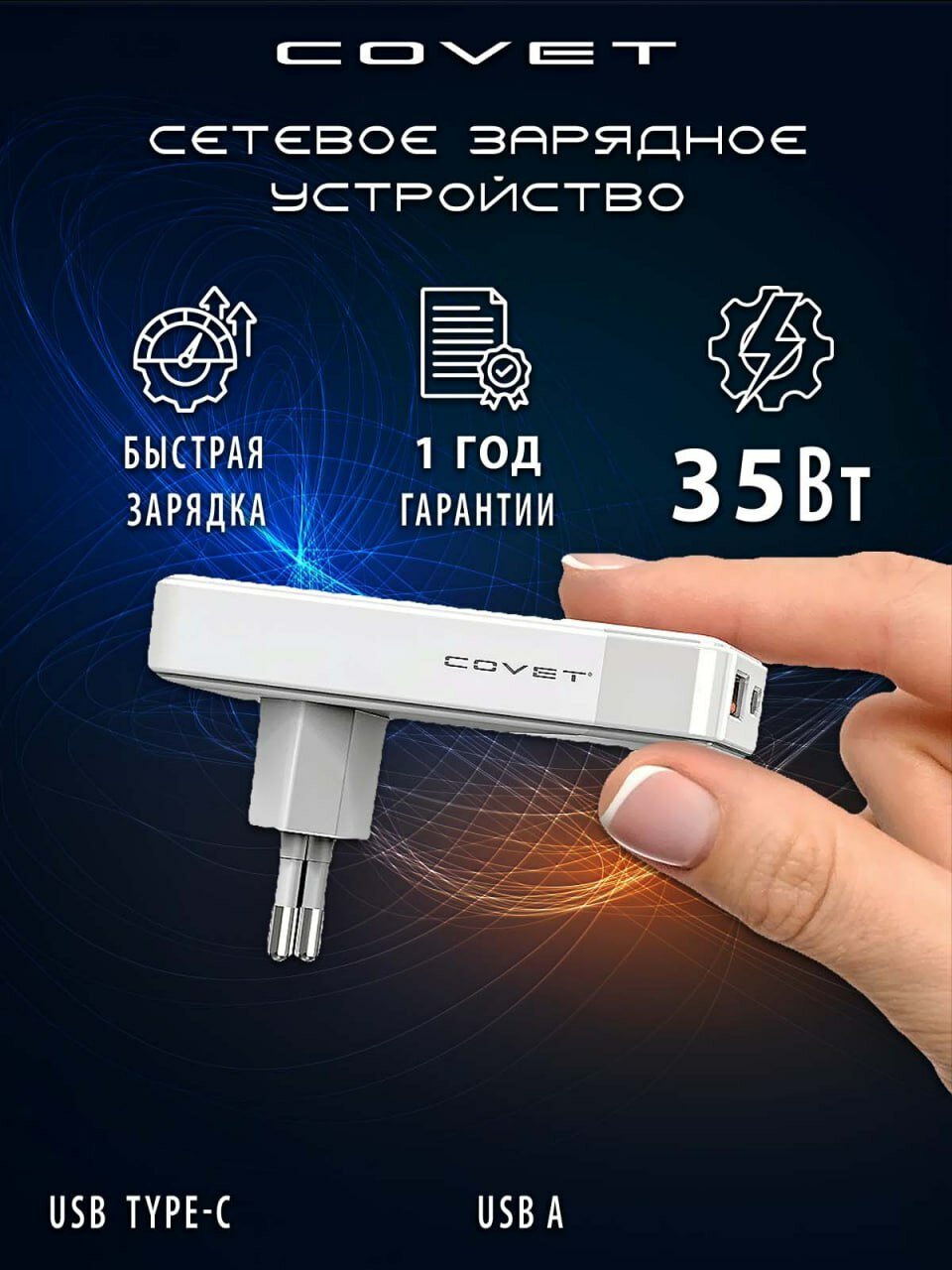 Зарядное устройство COVET «GaN II», 35Вт, быстрая зарядка, для Android/Apple, белое: сравнение цен, характеристики, фото, актуальное наличие и цены.