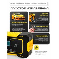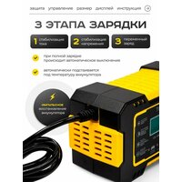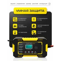 Многофункциональное интеллектуальное зарядное устройство 12V - незаменимый помощник для восстановления и зарядки автомобильных аккумуляторов, аккумуляторов мотоциклов и прочих транспортных средств. Зарядное устройство универсальное и подходит для всех типов акб. Перед началом работы выберите режим и зарядник автоматически подберет все параметры для безопасной, быстрой и эффективной зарядки вашего аккумулятора: Режим автомобиль - подходит для грузовых и легковых автомобилей, сельхозмашин, квадроциклов. Режим AGM/GEL - для AGM и гелевых аккумуляторов, для авто с системой START-STOP Режим мотоцикл - для всех видов мотоциклов, мопедов, скутеров. Режим десульфатации - для ремонта старых и поврежденных аккумуляторов при помощи функции импульсного восстановления батареи. Режим зима/лето - позволяет подстраиваться под температуру окружающей среды и подобрать необходимое напряжение. Устройство обеспечивает комплексную защиту акб при зарядке: защита от перегрева от сверхтока от замыкания от обратного соединения от перегрузки по току от низкого тока автоматическое отключение при полной зарядке. Портативное зарядное устройство имеет компактные размеры - легко брать с собой, помещается в бардачок автомобиля. Инструкция по использованию: Подключите клеммы: красную - к положительному электроду АКБ, черную - к отрицательному. Включите зарядное устройство в розетку 220V. Выберите режим, после чего начнется автоматическая зарядка АКБ. Длина провода с зажимами / крокодилами - 65 см, длина сетевого провода - 90 см.