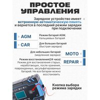 - Режим поддерживающего заряда не допустит перезарядки АКБ при долгом подключении к ЗУ.