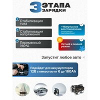 Зарядник располагает трехстадийным режимом заряда, в том числе режимом поддерживающего заряда, благодаря чему можно оставлять АКБ подключенным к ЗУ после завершения процедуры заряда.