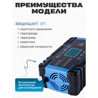 Диапазон емкостей подключаемых АКБ : 12 В: 6 А·ч — 150 А·ч 24 В: 6 А·ч — 100 А·ч