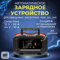 Купить Зарядное устройство Foxsur F-20A для аккумуляторов 12В и 24В, емкостью до 300 Ач с доставкой по всей России.