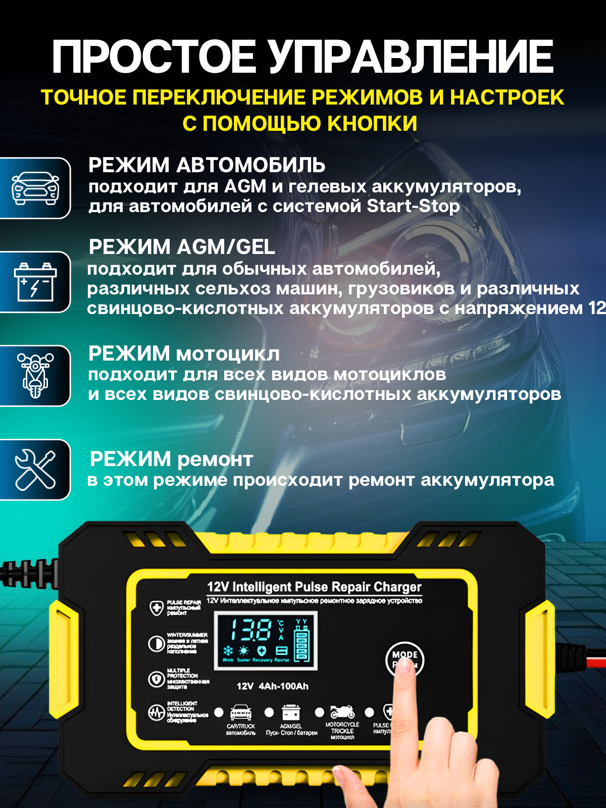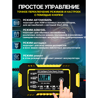 Зарядные устройства подходят для большинства типов аккумуляторов, включая кальциевые, гелевые и AGM, влажные аккумуляторы. Они также могут помочь восстановить разряженные и сульфатированные батареи. Типы аккумуляторов: Большинство типов свинцово-кислотных аккумуляторов, включая кальциевые, гелевые и AGM, влажные, EFB и т. д.