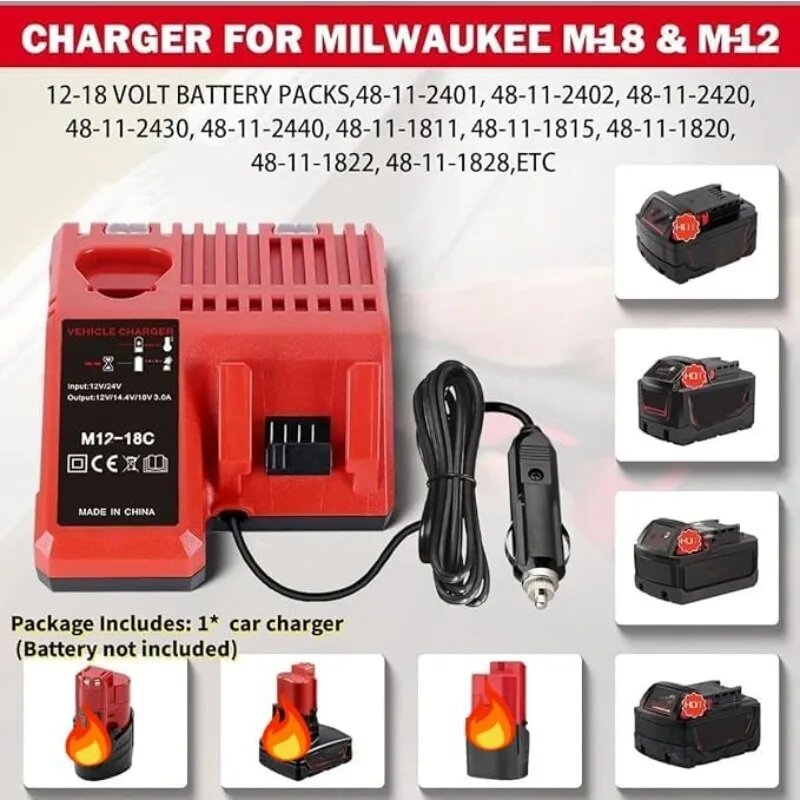 Зарядное устройство для Milwaukee 12 В 14 В 18 В M18 M12, вилка прикуривателя со светодиодным индикатором, автомобильное зарядное устройство, For Milwaukee: сравнение цен, характеристики, фото, актуальное наличие и цены.